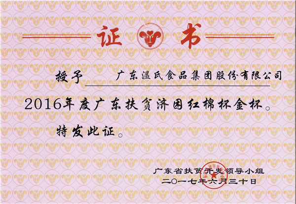 • 2016年度广东扶贫济困红棉杯金杯