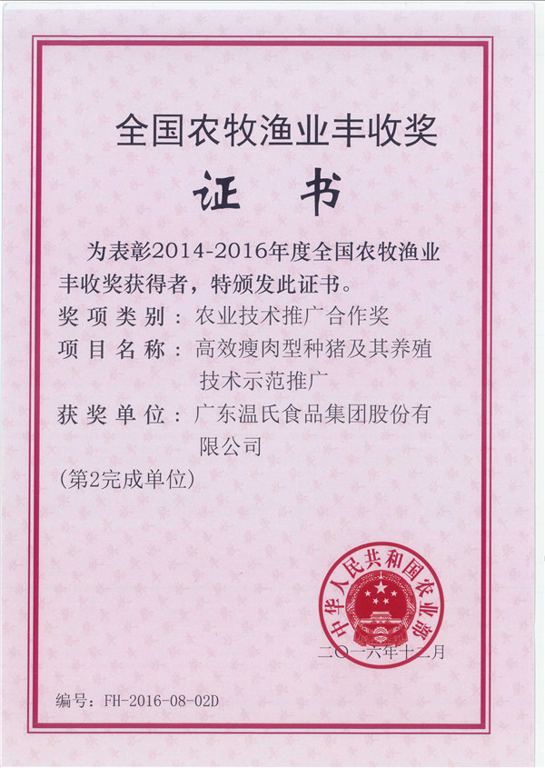 • 天下农牧渔业丰收奖-尊龙凯时股份《高效瘦肉型种猪及其养殖手艺树模推广》(第2完成单位)